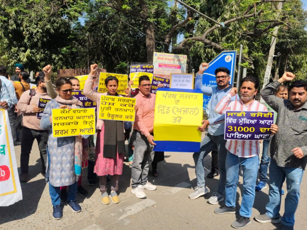 ਢਿੱਡ (ਖਜ਼ਾਨਾ) ਭਰੋ ਮਿਤੀ 02.03.2026 ( ਜਲੰਧਰ ) 20 ਸਾਲਾਂ ਤੋਂ ਸਿੱਖਿਆ ਵਿਭਾਗ ਵਿਚ ਤਨਦੇਹੀ ਨਾਲ ਆਪਣੀਆ ਸੇਵਾਵਾਂ ਦੇ ਰਹੇ ਦਫਤਰੀ ਕਰਮਚਾਰੀਆ ਦੀਆ ਤਨਖਾਹਾਂ ਤੇ 31000 ਰੁਪਏ ਪ੍ਰਤੀ ਮਹੀਨਾ ਕੱਟ ਲਾਉਣ ਤੋਂ ਰੋਸ ਵਿਚ ਆਏ ਸਿੱਖਿਆ ਵਿਭਾਗ ਦੇ ਦਫਤਰੀ ਕਰਮਚਾਰੀਆ ਵੱਲੋਂ ਅੱਜ ਜਲੰਧਰ ਵਿਖੇ ਰੋਸ ਪ੍ਰਦਰਸ਼ਨ ਕੀਤਾ ਗਿਆ। ਦਫਤਰੀ ਮੁਲਾਜ਼ਮਾਂ ਨੇ ਦੱਸਿਆ ਕੀ ਹਰ ਮਹੀਨੇ 31000-31000 ਤਨਖਾਹਾਂ ਕਟ ਕੇ ਵੀ ਸਰਕਾਰ ਦਾ ਢਿੱਡ ਨਹੀਂ ਭਰ ਰਿਹਾ ਏਸ ਲਈ ਗੋਲਕ ਬਣਾ ਕੇ ਆਮ ਲੋਕਾਂ ਨੂੰ ਅਪੀਲ ਕੀਤੀ ਕੀ ਸਰਕਾਰ ਦਾ ਢਿੱਡ (ਖਜ਼ਾਨਾ) ਭਰੋ, ਏਸ ਲਈ ਮੁਲਾਜ਼ਮਾਂ ਵੱਲੋ ਜਿਲਾ ਸਿੱਖਿਆ ਅਫਸਰ ਪ੍ਰਾਇਮਰੀ ਦਫਤਰ ਤੋਂ ਰੋਸ ਮਾਰਚ ਡੀ ਸੀ ਦਫਤਰ ਜਲੰਧਰ ਤੱਕ ਕੀਤਾ ਗਿਆ ਤੇ ਜਿਥੇ ਆਮ ਲੋਕਾਂ ਨੂੰ ਗੋਲਕ ਭਰਨ ਨੂੰ ਕਿਹਾ ਗਿਆ ਤਾਂ ਕੀ ਸਰਕਾਰ ਸਾਡੀ ਤਨਖਾਹ ਕਟੌਤੀ ਦਾ ਫੈਸਲਾ ਵਾਪਿਸ ਲਵੇ। ਏਸ ਮੌਕੇ ADC ਮੈਡਮ ਅਮਨੀਦੰਰ ਕੌਰ ਬਰਾੜ ਨੂੰ ਮੰਗ ਪੱਤਰ ਦਿੱਤਾ ਗਿਆ। ਮੁੱਖ ਮੰਤਰੀ ਭਗਵੰਤ ਮਾਨ ਦੀ ਅਗਵਾਈ ਵਿਚ 08/09/2025 ਦੀ ਕੈਬਨਿਟ ਮੀਟਿੰਗ ਦੌਰਾਨ ਮੁੱਖ ਮੰਤਰੀ ਭਗਵੰਤ ਮਾਨ ਅਤੇ ਕੈਬਨਿਟ ਮੀਟਿੰਗ ਤੋਂ ਬਾਅਦ ਵਿੱਤ ਮੰਤਰੀ ਹਰਪਾਲ ਸਿੰਘ ਚੀਮਾ ਅਤੇ ਸਿੱਖਿਆ ਮੰਤਰੀ ਹਰਜੋਤ ਬੈਂਸ ਕਈ ਵਾਰ ਅਧਿਕਾਰੀਆ ਨੂੰ ਤਨਖਾਹਾਂ ਨਾ ਘਟਾਉਣ ਅਤੇ ਠੋਸ ਫੈਸਲਾ ਲੈਣ ਦੀ ਹਦਾਇਤ ਕੀਤੀ ਪ੍ਰੰਤੂ ਸਿੱਖਿਆ ਵਿਭਾਗ ਦੇ ਅਧਿਕਾਰੀਆਂ ਵੱਲੋਂ ਸਰਕਾਰ ਦੇ ਹੁਕਮਾਂ ਨੂੰ ਅਣਗੋਲਿਆ ਕੀਤਾ ਗਿਆ। ਤਤਕਾਲੀ ਸਕੱਤਰ ਸਕੂਲ ਸਿੱਖਿਆ ਵੱਲੋਂ ਜਥੇਬੰਦੀ ਨਾਲ ਮਿਤੀ 10/10/2025 ਨੂੰ ਮੀਟਿੰਗ ਕੀਤੀ ਗਈ ਜਿਸ ਦੋਰਾਨ ਉਨ੍ਹਾ ਨਾਲ ਹੋਈ ਵਿਚਾਰ ਚਰਚਾ ਅਨੁਸਾਰ ਕਰਮਚਾਰੀਆ ਨੂੰ 01.04.2018 ਤੋਂ ਅਧਿਆਪਕਾਂ ਦੀ ਤਰ੍ਹਜ਼ ਤੇ ਰੈਗੂਲਰ ਕਰਨ ਅਤੇ ਤਨਖਾਹਾਂ ਨਾ ਘਟਾਉਣ ਸਬੰਧੀ ਗੱਲਬਾਤ ਹੋਈ ਸੀ ਜਿਸ ਦੋਰਾਨ ਉਨ੍ਹਾ ਨੂੰ ਬੇਨਤੀ ਪੱਤਰ ਵੀ ਦਿੱਤਾ ਗਿਆ ਸੀ ਪ੍ਰੰਤੂ 5 ਮਹੀਨੇ ਬੀਤਣ ਤੇ 01.04.2018 ਤੋਂ ਆਰਡਰ ਦੇਣ ਜਾਂ ਤਨਖਾਹਾਂ ਸਬੰਧੀ ਫੈਸਲਾ ਲੇਣ ਦੀ ਫਾਈਲ ਦਫਤਰ ਦੇ ਇਕ ਟੇਬਲ ਤੋਂ ਦੂਜੇ ਟੇਬਲ ਤੇ ਹੀ ਘੁੰਮ ਰਹੀ ਹੈ।ਪ੍ਰੈਸ ਨੂੰ ਜਾਣਕਾਰੀ ਦਿੰਦੇ ਹੋਏ ਸਰਵ ਸਿੱਖਿਆ ਅਭਿਆਨ ਮਿਡ ਡੇ ਮੀਲ ਦਫਤਰੀ ਕਰਮਚਾਰੀ ਯੂਨੀਅਨ ਦੇ ਆਗੂ ਸ਼ੋਭਿਤ ਭਗਤ, ਗਗਨਦੀਪ ਸ਼ਰਮਾ, ਰਾਜੀਵ ਸ਼ਰਮਾ, ਗਗਨ ਸਿਆਲ ਨੇ ਕਿਹਾ ਕਿ ਅੱਜ ਵਿੱਤ ਮੰਤਰੀ ਹਰਪਾਲ ਚੀਮਾ ਨਾਲ ਹੋਣ ਵਾਲੀ ਮੀਟਿੰਗ ਵਿਚ ਜੇਕਰ ਤਨਖਾਹ ਕਟੋਤੀ ਦਾ ਅਤੇ 01.04.2018 ਤੋਂ ਰੈਗੂਲਰ ਆਰਡਰ ਦੇਣ ਸਬੰਧੀ ਕੋਈ ਫੈਸਲਾ ਨਾ ਹੋਇਆ ਤਾਂ ਮੁਲਾਜ਼ਮ ਮੁੱਖ ਮੰਤਰੀ,ਵਿੱਤ ਮੰਤਰੀ ਅਤੇ ਸਿੱਖਿਆ ਮੰਤਰੀ ਦੇ ਘਰਾਂ ਵੱਲ ਗੁਪਤ ਐਕਸ਼ਨ ਕਰਨ ਨੂੰ ਮਜ਼ਬੂਰ ਹੋਣਗੇ।